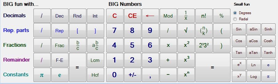 Normal & Scientific Calculations, Fractions, Repetitive Parts, BIG Numbers